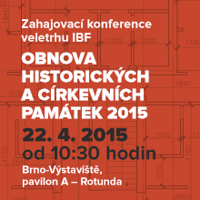 Registrujte se na zahajovací konferenci stavebního veletrhu IBF s názvem Obnova historických a církevních staveb 2015. Koná se 22. dubna 2015 od 10.30 hodin v pavilonu A, sále Rotunda. Další podrobnosti najdete v příloze.